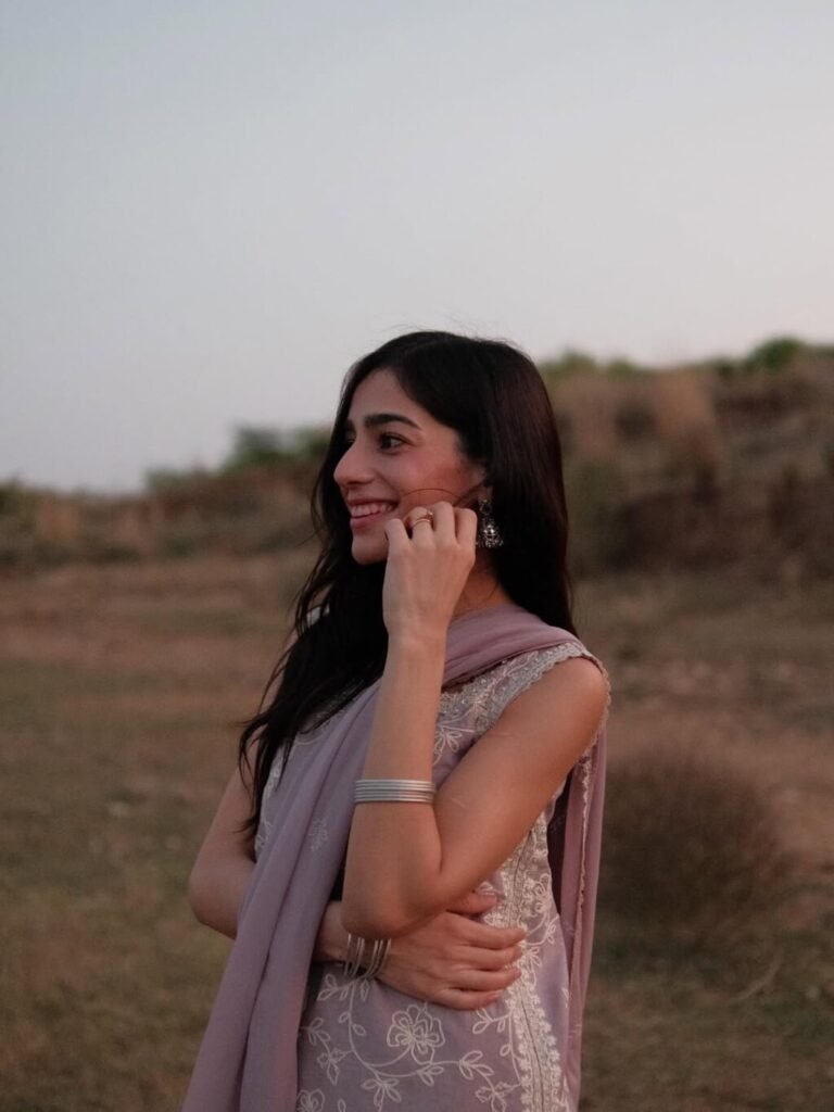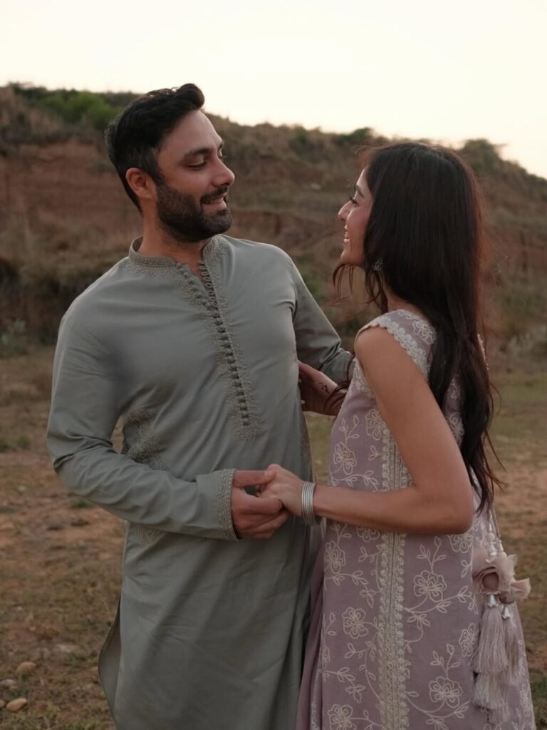 On Eid ul Fitr 2026, Ahmed Ali Akbar and Maham Batool shared a beautiful outdoor photoshoot that caught everyone’s attention. The actor chose a sage green kurta with shalwar, giving a classic eastern look, while Maham Batool wore a muted mauve embroidered farshi shirt with culottes, creating a soft and elegant Eid style.