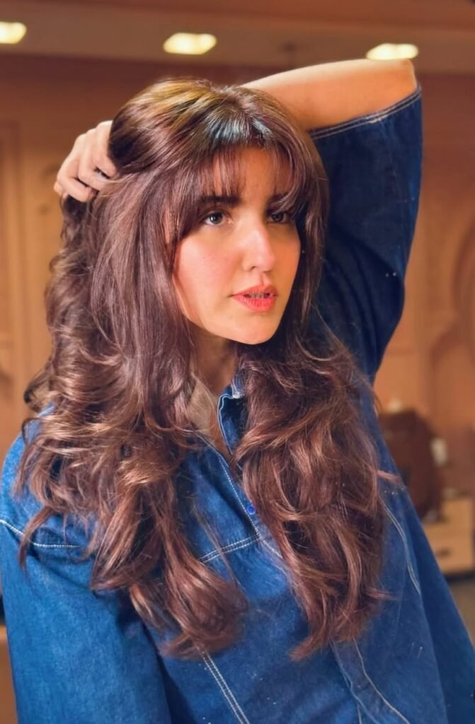 Hareem Farooq has built an impressive career in Pakistani television and cinema. She rose to fame with memorable dramas such as Diyar-e-Dil, Mere Humdam Mere Dost, Main Khayal Hoon Kisi Aur Ka, Bismil, 22 Qadam, and Dusri Bivi. On the big screen, she delivered hit films like Parchi and Heer Maan Ja. Currently, audiences are praising her performance as Sanam in ARY Digital’s popular drama Shanaspand. With over 3.1 million followers on social media, she enjoys massive fan support.